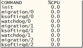 $ps -eo pid,tid,class,rtprio,ni,pri,psr,pcpu,stat,wchan:14,comm