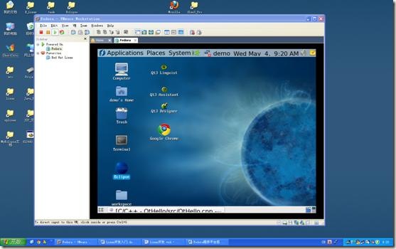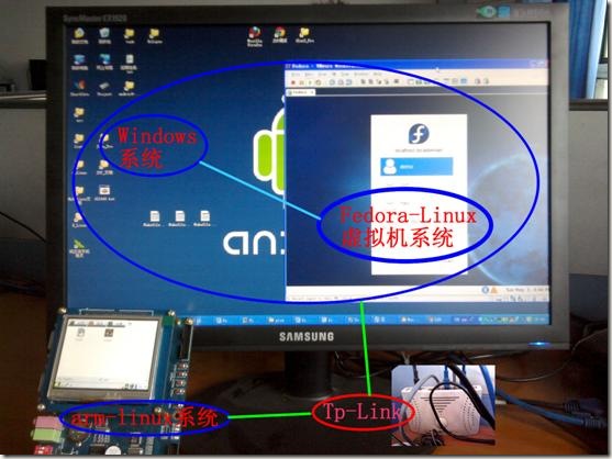 在同一个硬件PC机上运行的两个系统。Windows实体系统用来做一般的用途,比如联网,处理文档等等;Fedora Linux虚拟系统则用来开发Linux程序并进行编译生成可执行文件。