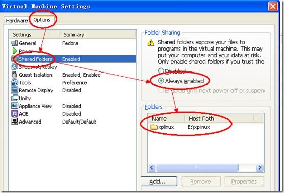 建立共享目录可以方便虚拟机和实体机进行文件交流。例如,我们可以将在Linux机器上编译生成好执行文件放置到共享目录中,然后可以通过Windows机器提取出来并通过网络传送到arm-linux嵌入式板上。