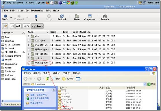 然后在Linux虚拟机文件系统中可以找到对应的共享目录:/mnt/hgfs/xplinux