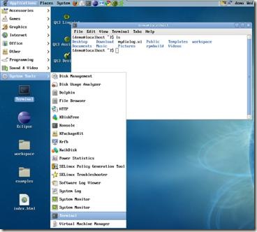 执行系统菜单命令【Applications】--【System Tools】--【Terminal】,打开Terminal终端: