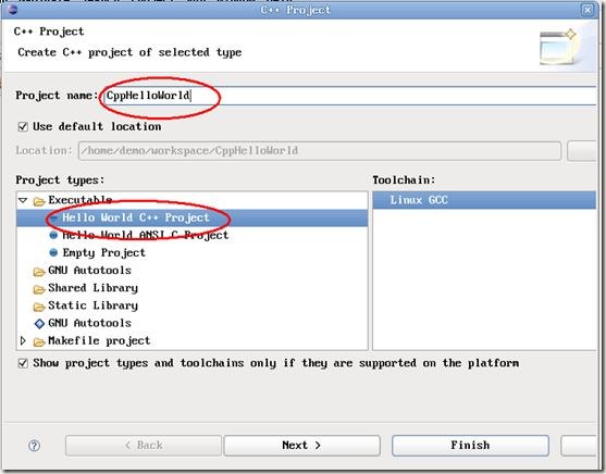 说明:如果是开发控制台程序,则不需要进行任何其它设计,只需要直接编写C++代码即可,不用对编译库和编译器进行设置,Eclipse已经为我们自动完成了这些内容。