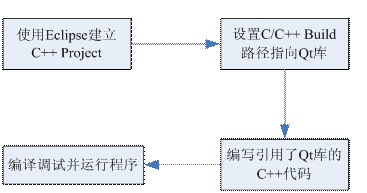 编写窗口程序,我们只需要在建立了C++ Project的情况下,对C/C++ Build路径进行设置,指向qt-3.3的库即可。主要开发流程如下: