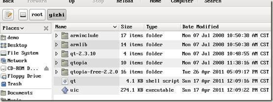 在Linux系统中新建目录/root/yizhi,然后将已经编译好的arm-QT库复制到此目录下面。