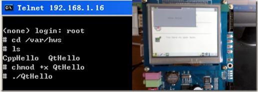 5.将QtHello文件传送到arm板并运行程序(详细操作方法在4.2.3节中有介绍)。