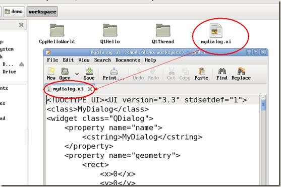 打开mydialog.ui文件,发现其实只是一个xml文件: