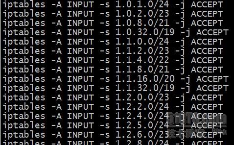 echo "iptables -A INPUT -s $i -j ACCEPT" >>iptables.sh