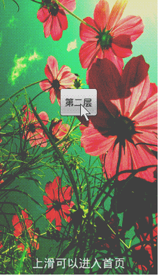 <com.manymore13.scrollerdemo.PullDoorViewandroid:id="@+id/myImage"android:layout_width="match_parent"android:layout_height="match_parent"android:background="#ddd" ><Button android:id="@+id/btn_above" android:layout_width="wrap_content" android:layout_height="wrap_content" android:layout_centerInParent="true" android:text="第二层" /><TextView android:id="@+id/tv_hint" android:layout_width="wrap_content" android:layout_height="wrap_content" android:layout_alignParentBottom="true" android:layout_centerHorizontal="true" android:layout_marginBottom="10dp" android:text="上滑可以进入首页" android:textColor="#ffffffff" android:textSize="18sp" /> </com.manymore13.scrollerdemo.PullDoorView>