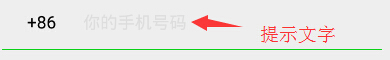 <LinearLayout android:layout_width="match_parent" android:layout_height="50dip" android:orientation="horizontal" android:layout_marginTop="50dp"> <TextView android:layout_width="50dip" android:layout_height="50dip" android:gravity="center_vertical|right" android:text="+86" android:textColor="@color/colorSpecialBlack" android:textSize="@dimen/font_size_medium" /> <EditText android:id="@+id/edt_login_cellphone_number" android:layout_width="0dp" android:layout_height="50dip" android:layout_weight="1" android:layout_marginLeft="25dp" android:background="@null" android:hint="你的手机号码" android:textSize="@dimen/font_size_medium" android:textColorHint="@color/colorHintText"/> </LinearLayout> <View android:id="@+id/dvd_login_username" android:layout_width="match_parent" android:layout_height="2px" android:background="@color/colorDefault" /> <LinearLayout android:layout_width="match_parent" android:layout_height="50dip" android:orientation="horizontal"> <TextView android:layout_width="50dip" android:layout_height="50dip" android:gravity="center_vertical|right" android:text="@string/string_pass_word" android:textColor="@color/colorSpecialBlack" android:textSize="@dimen/font_size_medium" /> <EditText android:id="@+id/edt_login_password" android:layout_width="0dp" android:layout_height="50dip" android:layout_weight="1" android:layout_marginLeft="25dp" android:background="@null" android:inputType="textPassword" android:textSize="@dimen/font_size_medium" android:hint="填入密码" android:textColorHint="@color/colorHintText"/> </LinearLayout> <View android:id="@+id/dvd_login_password" android:layout_width="match_parent" android:layout_height="2px" android:background="@color/colorDefault" />上述代码中的大部分属性在前面都已经介绍过了,新增的属性有只有三个,下面分别介绍。android:inputType用于描述输入框的输入类型,如这里用到的是密码类型:textPassword,这样就可以将输入的字母变成一个个小点点,如下:
