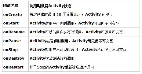 (5)各事件回调函数的调用时机及Activity状态如下: