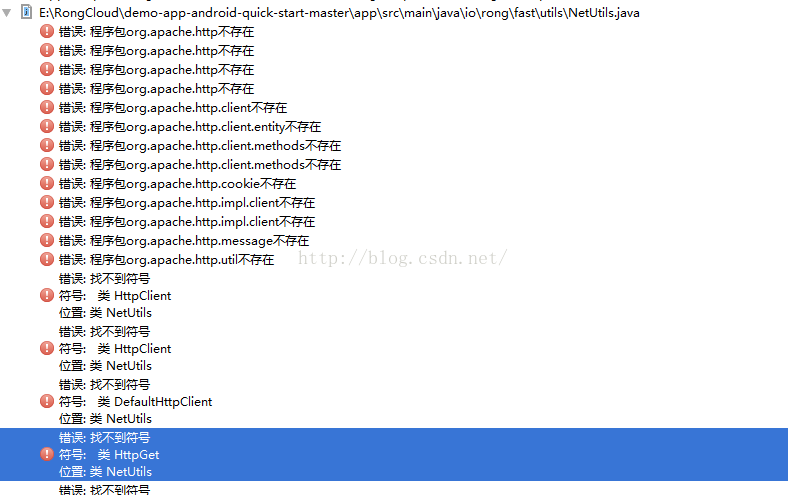 解决办法:Android 6.0(api 23)已经不支持HttpClient了,在build.gradle中 加入 useLibrary "org.apache.http.legacy"就可以了,如图: