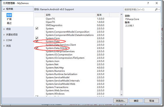 鼠标右击【引用】à【添加引用】,在弹出的窗口中勾选“System.Data”和“System.Data.SQlite”,如下图所示: