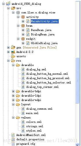 public class BaseBean {/*** 标题*/ String title; /*** 内容*/ String content;/*** 获取标题** @return 标题*/ public String getTitle() { return title; }/*** 设置标题** @param title*标题*/ public void setTitle(String title) { this.title = title; }/*** 获取内容** @return 内容*/ public String getContent() { return content; }/*** 设置内容** @param content*内容*/ public void setContent(String content) { this.content = content; } } 以上是基类中的内容,那接下来就看看Dialog中是怎么定义的吧:public class DialogBean extends BaseBean {/*** 点击返回键是否可消失*/ boolean cancelable; /*** 点击蒙皮是否可以消失*/ boolean outCancelable; /*** 事件监听*/ DialogClickListener listener; /*** 按钮类型【默认显示两个按钮】*/ DialogButtonType buttonType = DialogButtonType.TwoButton;/*** 显示布局资源ID*/ Integer layoutResID;public DialogBean() { }/*** 点击BACK键是否可以消失** @return 【true:可消失】【false:不消失】*/ public boolean isCancelable() { return cancelable; }/*** 设置点击BACK键是否可以消失** @param cancelable*【true:可消失】【false:不消失】*/ public void setCancelable(boolean cancelable) { this.cancelable = cancelable; }/*** 点击蒙皮是否可以消失** @return 【true:可消失】【false:不消失】*/ public boolean isOutCancelable() { return outCancelable; }/*** 设置点击蒙皮是否可以消失** @param outCancelable*【true:可消失】【false:不消失】*/ public void setOutCancelable(boolean outCancelable) { this.outCancelable = outCancelable; }/*** 获取事件监听器** @return 事件监听器*/ public DialogClickListener getListener() { return listener; }/*** 设置事件监听器** @param listener*事件监听器*/ public void setListener(DialogClickListener listener) { this.listener = listener; }/*** 获取按钮类型** @return 按钮类型*/ public DialogButtonType getButtonType() { return buttonType; }/*** 设置按钮类型** @param buttonType*按钮类型*/ public void setButtonType(DialogButtonType buttonType) { this.buttonType = buttonType; }/*** 获取要显示的布局ID** @return 要显示的布局ID*/ public Integer getLayoutResID() { return layoutResID; }/*** 设置要显示的布局ID** @param layoutResID*要显示的布局ID*/ public void setLayoutResID(Integer layoutResID) { this.layoutResID = layoutResID; }/*** 按钮类型** @author llew*/ public enum DialogButtonType { /*** 一个按钮*/ OneButton, /*** 两个按钮*/ TwoButton, /*** 三个按钮*/ ThreeButton }/*** 按钮点击监听器** @author llew**/ public interface DialogClickListener { /*** 点击按钮** @param buttonIndex*按钮下标【从0开始】*/ public void onClick(int buttonIndex); } } DialogBean中的代码注释的都很详细了,就不再多解释了,主要就是封装了对话框中常见的属性。接下来就看看定义的所需要的Dialog的样式吧:<style name="theme_dialog_alert" parent="@android:style/Theme.Dialog"> <item name="android:windowNoTitle">true</item> <item name="android:windowBackground">@android:color/transparent</item> </style>样式主要定义了该对话框没有标题,背景颜色是透明的,现在所需的样式定义完了,主角GlobleDialog该出场了,代码如下: