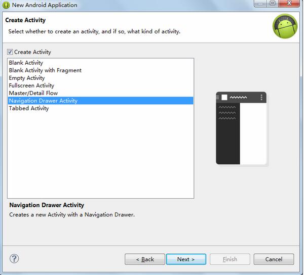 当你新建一个 Android 项目的时候,你可以选择使用 Navigation Drawer: