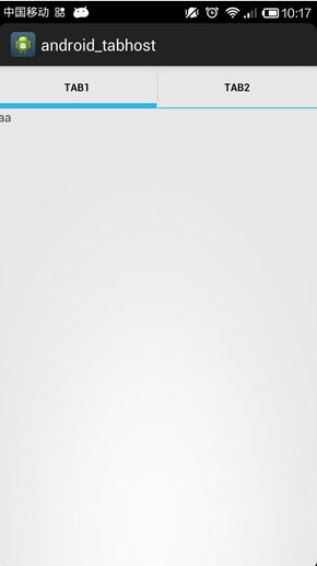 <TabHost xmlns:android="http://schemas.android.com/apk/res/android"xmlns:tools="http://schemas.android.com/tools"android:id="@android:id/tabhost"android:layout_width="match_parent"android:layout_height="match_parent"tools:context=".Main" ><LinearLayoutandroid:layout_width="match_parent"android:layout_height="match_parent"android:orientation="vertical" ><TabWidgetandroid:id="@android:id/tabs"android:layout_width="match_parent"android:layout_height="wrap_content" ></TabWidget><FrameLayoutandroid:id="@android:id/tabcontent"android:layout_width="match_parent"android:layout_height="wrap_content" ><LinearLayoutandroid:id="@+id/tab1"android:layout_width="match_parent"android:layout_height="wrap_content"android:orientation="vertical" ><TextViewandroid:layout_width="match_parent"android:layout_height="match_parent"android:text="aa" /></LinearLayout><LinearLayoutandroid:id="@+id/tab2"android:layout_width="match_parent"android:layout_height="wrap_content"android:orientation="vertical" ><TextViewandroid:layout_width="match_parent"android:layout_height="match_parent"android:text="bb" /></LinearLayout></FrameLayout></LinearLayout></TabHost>Main.java: