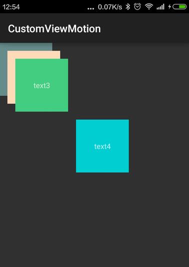 package com.app.CustomViewMotion;import android.content.Context;import android.content.res.TypedArray;import android.util.AttributeSet;import android.view.View;import android.view.ViewGroup;/** * Created by charles on 2015/8/13. */public class CascadeViewGroup extends ViewGroup { //自定义布局中设置的宽度和高度 private int mHoriztonalSpacing; private int mVerticalSpacing; public CascadeViewGroup(Context context) {this(context, null); } public CascadeViewGroup(Context context, AttributeSet attrs) {this(context, attrs, 0); } public CascadeViewGroup(Context context, AttributeSet attrs, int defStyle) {super(context, attrs, defStyle);TypedArray a = context.obtainStyledAttributes(attrs, R.styleable.CascadeViewGroup);try { //获取设置的宽度 mHoriztonalSpacing = a.getDimensionPixelSize(R.styleable.CascadeViewGroup_horizontalspacing, this.getResources().getDimensionPixelSize(R.dimen.default_horizontal_spacing)); //获取设置的高度 mVerticalSpacing = a.getDimensionPixelSize(R.styleable.CascadeViewGroup_verticalspacing, this.getResources().getDimensionPixelSize(R.dimen.default_vertical_spacing));} catch (Exception e) { e.printStackTrace();} finally { a.recycle();} } @Override protected void onMeasure(int widthMeasureSpec, int heightMeasureSpec) {final int count = this.getChildCount();int width = this.getPaddingLeft();int height = this.getPaddingTop();for (int i = 0; i < count; i++) { final View currentView = this.getChildAt(i); this.measureChild(currentView, widthMeasureSpec, heightMeasureSpec); CascadeViewGroup.LayoutParams lp = (CascadeViewGroup.LayoutParams) currentView.getLayoutParams(); if(lp.mSettingPaddingLeft != 0){width +=lp.mSettingPaddingLeft; } if(lp.mSettingPaddingTop != 0){height +=lp.mSettingPaddingTop; } lp.x = width; lp.y = height; width += mHoriztonalSpacing; height += mVerticalSpacing;}width +=getChildAt(this.getChildCount() - 1).getMeasuredWidth() + this.getPaddingRight();height += getChildAt(this.getChildCount() - 1).getMeasuredHeight() + this.getPaddingBottom();this.setMeasuredDimension(resolveSize(width, widthMeasureSpec), resolveSize(height, heightMeasureSpec)); } @Override protected void onLayout(boolean b, int l, int i1, int i2, int i3) {final int count = this.getChildCount();for (int i = 0; i < count; i++) { final View currentView = this.getChildAt(i); CascadeViewGroup.LayoutParams lp = (CascadeViewGroup.LayoutParams) currentView.getLayoutParams(); currentView.layout(lp.x, lp.y, lp.x + currentView.getMeasuredWidth(), lp.y + currentView.getMeasuredHeight());} } public static class LayoutParams extends ViewGroup.LayoutParams {int x;int y;int mSettingPaddingLeft;int mSettingPaddingTop;public LayoutParams(Context c, AttributeSet attrs) { super(c, attrs); TypedArray a = c.obtainStyledAttributes(attrs, R.styleable.CascadeViewGroup_LayoutParams); mSettingPaddingLeft = a.getDimensionPixelSize(R.styleable.CascadeViewGroup_LayoutParams_layout_paddingleft, 0); mSettingPaddingTop = a.getDimensionPixelSize(R.styleable.CascadeViewGroup_LayoutParams_layout_paddinTop, 0); a.recycle();}public LayoutParams(int width, int height) { super(width, height);}public LayoutParams(ViewGroup.LayoutParams source) { super(source);} } @Override protected ViewGroup.LayoutParams generateDefaultLayoutParams() {return new LayoutParams(LayoutParams.WRAP_CONTENT, LayoutParams.WRAP_CONTENT); } @Override protected ViewGroup.LayoutParams generateLayoutParams(ViewGroup.LayoutParams p) {return new LayoutParams(p); } @Override public ViewGroup.LayoutParams generateLayoutParams(AttributeSet attrs) {return new LayoutParams(this.getContext(), attrs); }}代码稍微优点长,但是结构还是很清晰的。<?xml version="1.0" encoding="utf-8"?><!--添加自定义属性给viewGroup--><!--新添加的命名空间的后缀必须保持和.xml中声明的包名一致--><com.app.CustomViewMotion.CascadeViewGroupxmlns:android="http://schemas.android.com/apk/res/android"xmlns:ts="http://schemas.android.com/apk/res/com.app.CustomViewMotion"android:layout_width="match_parent"android:layout_height="match_parent"ts:horizontalspacing="15dp"ts:verticalspacing="15dp"> <TextView android:layout_width="100dp"android:layout_height="100dp"android:gravity="center"android:text="text1"android:background="#668B8B"/> <TextView android:layout_width="100dp"android:layout_height="100dp"android:gravity="center"android:text="text2"android:background="#FFDAB9"/> <TextView android:layout_width="100dp"android:layout_height="100dp"android:gravity="center"android:text="text3"android:background="#43CD80"/><!--这个子view中添加自定义子view属性--> <TextView android:layout_width="100dp"android:layout_height="100dp"android:gravity="center"android:text="text4"ts:layout_paddingleft="100dp"ts:layout_paddinTop="100dp"android:background="#00CED1"/></com.app.CustomViewMotion.CascadeViewGroup>实现的效果如下: