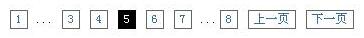 <?php class Page {private $total; //总记录private $pagesize;//每页显示多少条private $limit; //limitprivate $page; //当前页码private $pagenum;//总页码private $url; //地址private $bothnum;//两边保持数字分页的量 //构造方法初始化public function __construct($_total, $_pagesize) { $this->total = $_total ? $_total : 1; $this->pagesize = $_pagesize;$this->pagenum = ceil($this->total / $this->pagesize); $this->page = $this->setPage(); $this->limit = "LIMIT ".($this->page-1)*$this->pagesize.",$this->pagesize"; $this->url = $this->setUrl(); $this->bothnum = 2;} //拦截器private function __get($_key) { return $this->$_key;} //获取当前页码private function setPage() { if (!empty($_GET["page"])) {if ($_GET["page"] > 0) { if ($_GET["page"] > $this->pagenum) {return $this->pagenum; } else {return $_GET["page"]; }} else { return 1;} } else {return 1; }}//获取地址private function setUrl() { $_url = $_SERVER["REQUEST_URI"]; $_par = parse_url($_url); if (isset($_par["query"])) {parse_str($_par["query"],$_query);unset($_query["page"]);$_url = $_par["path"]."?".http_build_query($_query); } return $_url;}//数字目录private function pageList() { for ($i=$this->bothnum;$i>=1;$i--) { $_page = $this->page-$i; if ($_page < 1) continue;$_pagelist .= " <a href="".$this->url."&page=".$_page."">".$_page."</a> "; } $_pagelist .= " <span class="me">".$this->page."</span> "; for ($i=1;$i<=$this->bothnum;$i++) {$_page = $this->page+$i;if ($_page > $this->pagenum) break;$_pagelist .= " <a href="".$this->url."&page=".$_page."">".$_page."</a> "; } return $_pagelist;} //首页private function first() { if ($this->page > $this->bothnum+1) {return " <a href="".$this->url."">1</a> ..."; }} //上一页private function prev() { if ($this->page == 1) {return "<span class="disabled">上一页</span>"; } return " <a href="".$this->url."&page=".($this->page-1)."">上一页</a> ";} //下一页private function next() { if ($this->page == $this->pagenum) {return "<span class="disabled">下一页</span>"; } return " <a href="".$this->url."&page=".($this->page+1)."">下一页</a> ";} //尾页private function last() { if ($this->pagenum - $this->page > $this->bothnum) {return " ...<a href="".$this->url."&page=".$this->pagenum."">".$this->pagenum."</a> "; }} //分页信息public function showpage() { $_page .= $this->first(); $_page .= $this->pageList(); $_page .= $this->last(); $_page .= $this->prev(); $_page .= $this->next(); return $_page;} }?>分页样式如下图所示: