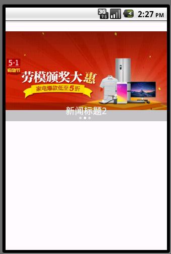 在布局文件中,先添加<android.support.v4.view.ViewPager/>控件,这个只是轮播的区域