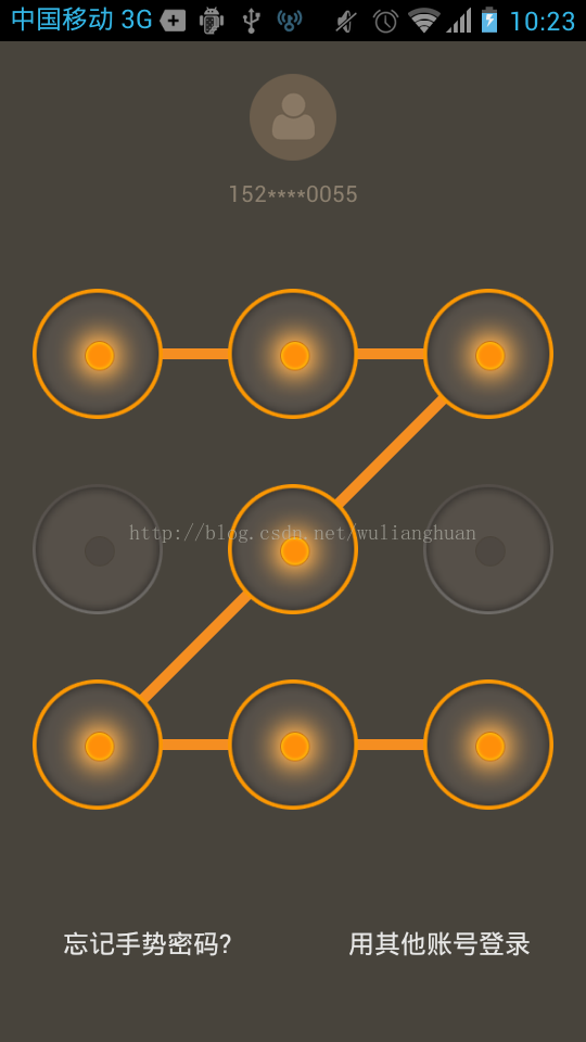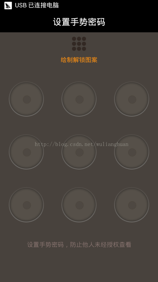 图1:手势密码绘制界面 【主要是绘制上方的9个提示图标和9个宫格密码图标】