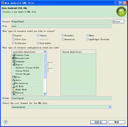3) 创建Activity布局在rec/layout文件夹里创建布局xml页面 new->others->android->android xml file