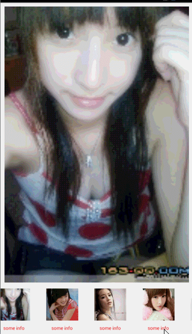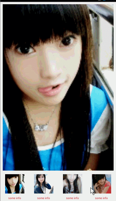 效果还是不错的,接下来我想改成相册效果,即上面显示一张大图,下面的RecyclerView做为图片切换的指示器。