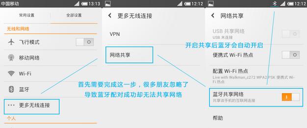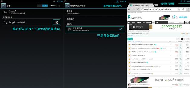 二、开启N7 二代蓝牙并配对,返回WT19i,已配对设备》配置》开启互联网连接共享
