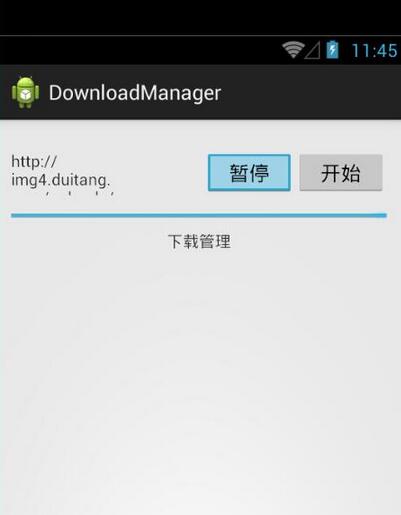 package entity;public class DownloadInfo {private int threadId;//线程IDprivate int startPos;//下载起始位置private int endPos;//下载结束位置private int completeSize;//下载完成量private String url;//资源URLpublic DownloadInfo(int tId,int sp, int ep,int cSize,String address){threadId=tId;startPos=sp;endPos=ep;completeSize = cSize;url=address;}/** * @return the threadId */public int getThreadId() {return threadId;}/** * @param threadId the threadId to set */public void setThreadId(int threadId) {this.threadId = threadId;}/** * @return the startPos */public int getStartPos() {return startPos;}/** * @param startPos the startPos to set */public void setStartPos(int startPos) {this.startPos = startPos;}/** * @return the endPos */public int getEndPos() {return endPos;}/** * @param endPos the endPos to set */public void setEndPos(int endPos) {this.endPos = endPos;}/** * @return the completeSize */public int getCompleteSize() {return completeSize;}/** * @param completeSize the completeSize to set */public void setCompleteSize(int completeSize) {this.completeSize = completeSize;}/** * @return the url */public String getUrl() {return url;}/** * @param url the url to set */public void setUrl(String url) {this.url = url;}@Overridepublic String toString() {// TODO Auto-generated method stubreturn "threadId:"+threadId+",startPos:"+startPos+",endPos:"+endPos+",completeSize:"+completeSize+",url:"+url;}}数据库 DBHelper.javapackage db;import android.content.Context;import android.database.sqlite.SQLiteDatabase;import android.database.sqlite.SQLiteOpenHelper;public class DBHelper extends SQLiteOpenHelper {String sql ="create table download_info (id integer PRIMARY KEY AUTOINCREMENT,"+ "thread_id integer,"+ "start_pos integer,"+ "end_pos integer,"+ "complete_size integer,"+ "url char)";public DBHelper(Context context) {// TODO Auto-generated constructor stubsuper(context, "download.db", null, 1);}@Overridepublic void onCreate(SQLiteDatabase db) {// TODO Auto-generated method stubdb.execSQL(sql);}@Overridepublic void onUpgrade(SQLiteDatabase db, int oldVersion, int newVersion) {// TODO Auto-generated method stub}}数据库业务管理类 Dao.javapackage db;import java.util.ArrayList;import java.util.List;import android.content.Context;import android.database.Cursor;import android.database.sqlite.SQLiteDatabase;import entity.DownloadInfo;public class Dao {private DBHelper dbHelper;public Dao(Context context){dbHelper = new DBHelper(context);}public boolean isNewTask(String url){SQLiteDatabase db = dbHelper.getReadableDatabase();String sql = "select count(*) from download_info where url=?";Cursor cursor = db.rawQuery(sql, new String[]{url});cursor.moveToFirst();int count = cursor.getInt(0);cursor.close();return count == 0;}public void saveInfo(List<DownloadInfo> infos){SQLiteDatabase db = dbHelper.getWritableDatabase();String sql = "insert into download_info(thread_id,start_pos,end_pos,complete_size,url) values(?,?,?,?,?)";Object[] bindArgs= null;for(DownloadInfo info:infos){bindArgs=new Object[]{info.getThreadId(),info.getStartPos(),info.getEndPos(),info.getCompleteSize(),info.getUrl()};db.execSQL(sql, bindArgs);}}public List<DownloadInfo> getInfo(String url){SQLiteDatabase db = dbHelper.getReadableDatabase();List<DownloadInfo> infos = new ArrayList<DownloadInfo>();String sql ="select thread_id,start_pos,end_pos,complete_size,url from download_info where url=?";Cursor cursor=db.rawQuery(sql, new String[]{url});while(cursor.moveToNext()){DownloadInfo info = new DownloadInfo(cursor.getInt(0), cursor.getInt(1), cursor.getInt(2), cursor.getInt(3),cursor.getString(4));infos.add(info);}cursor.close();return infos;}public void deleteInfo(String url){SQLiteDatabase db = dbHelper.getWritableDatabase();db.delete("download_info", "url=?", new String[]{url});db.close();}public void updateInfo(int completeSize,int threadId,String url){SQLiteDatabase db = dbHelper.getWritableDatabase();String sql ="update download_info set complete_size=? where thread_id=? and url=?";db.execSQL(sql, new Object[]{completeSize,threadId,url});}public void closeDB(){dbHelper.close();}}当前状态保存类 LoadInfo.javapackage entity;public class LoadInfo {private int fileSize;private int completeSize;private String url;public LoadInfo(int fs,int cSize,String address){fileSize=fs;completeSize = cSize;url=address;}/** * @return the fileSize */public int getFileSize() {return fileSize;}/** * @param fileSize the fileSize to set */public void setFileSize(int fileSize) {this.fileSize = fileSize;}/** * @return the completeSize */public int getCompleteSize() {return completeSize;}/** * @param completeSize the completeSize to set */public void setCompleteSize(int completeSize) {this.completeSize = completeSize;}/** * @return the url */public String getUrl() {return url;}/** * @param url the url to set */public void setUrl(String url) {this.url = url;}}下载助手类:Downloader.javapackage com.winton.downloadmanager;import java.io.File;import java.io.IOException;import java.io.InputStream;import java.io.RandomAccessFile;import java.net.HttpURLConnection;import java.net.MalformedURLException;import java.net.URL;import java.util.ArrayList;import java.util.List;import android.content.Context;import android.os.Handler;import android.os.Message;import db.Dao;import entity.DownloadInfo;import entity.LoadInfo;public class Downloader {private String url;private String localPath;private int threadCount;private Handler mHanler;private Dao dao;private int fileSize;private List<DownloadInfo> infos;private final static int INIT = 1;private final static int DOWNLOADING =2;private final static int PAUSE =3;private int state = INIT;public Downloader(String address,String lPath,int thCount,Context context,Handler handler){url =address;localPath = lPath;threadCount = thCount;mHanler = handler;dao = new Dao(context);}public boolean isDownloading(){return state == DOWNLOADING;}public LoadInfo getDownLoadInfos(){if(isFirstDownload(url)){init();int ran