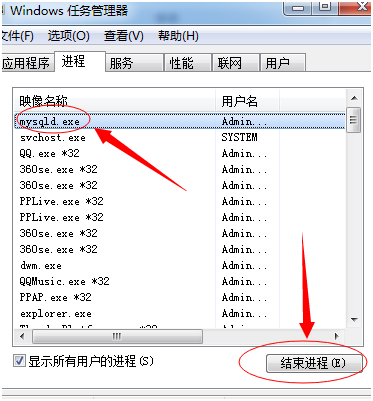 mysql>use mysql mysql>update user set password=PASSWORD("new_password") where user="root"; mysql>flush privileges; mysql>quit5. 看看那任务管理器中是否有mysqld.exe进程,如有,kill them all.