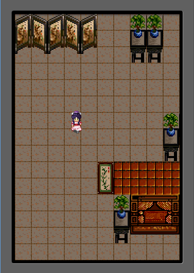 还是以人物向右移动为例,我们须要三个坐标 一个是m_HeroPos 来保存人物在地图中的X坐标 一个是 mScreenPos 来保存人物在屏幕中的显示坐标 mMapPos 来保存地图在手机屏幕中的显示坐标,按键盘右键后人物在地图中的坐标加上8像素(表示行走的步长),当人物的坐标超过屏幕的三分之二的时候需要检测地图是 否已经在边界, 使用地图绘制在屏幕中的X坐标 加上地图的宽度 判断是否等于屏幕的宽度如果等式不成立 则表示地图可以向左放移动 这时候后人物mScreenPos人物显示坐标将不变 mMapPos地图显示坐标将向左移动人物一个步长的位置,如果之前的等式成立 则表示地图无法在向左移动 这时候mScreenPos人物显示坐标将向右移动人物一个步长的位置 直到屏幕右侧边界 mMapPos地图显示坐标不会改变。其三个方向的移动算法完全一样。