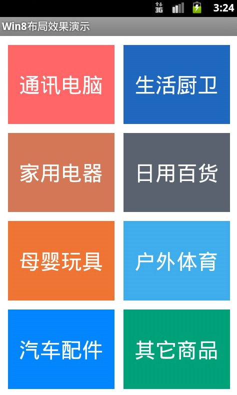 private String[] textarr = new String[]{"通讯电脑","生活厨卫","家用电器","日用百货","母婴玩具","户外体育","汽车配件","其它商品"};