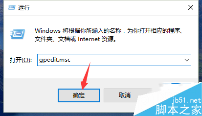 2、在输入框里输入“gpedit.msc”的命令,记住要输入全名,点确定执行。