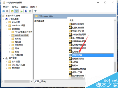 5、右边有很多选择,在其中找到“游戏浏览器”后双击鼠标左键展开这个选项并且打开。