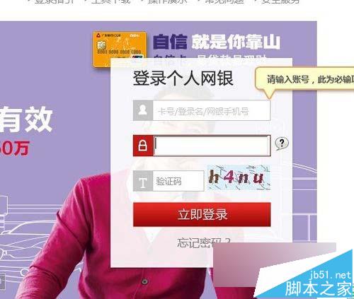5、然后打开IE并跳转到广发银行网站,如果系统提示运行NET Command、XXX服务什么的,点击是即可。此时看到密码框显示光标并可以录入。
