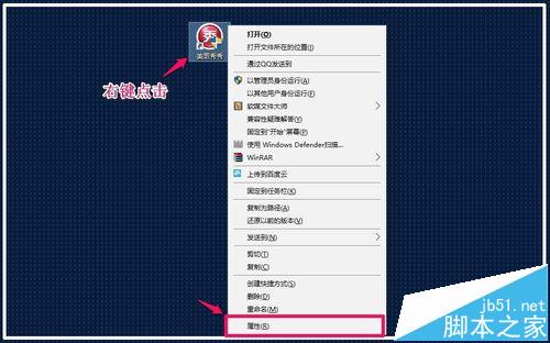 10、右键点击第三方软件程序的快捷方式图标,如:美图秀秀,在右键菜单中点击【属性】;