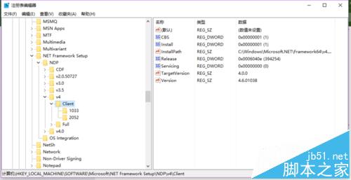 2、找到HKEY_LOCAL_MACHINESOFTWAREMicrosoftNET FrameworkSetupNDPv4Client