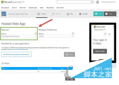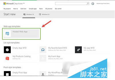 进入Windows App Studio创建工程页面,需要使用微软账户登录。在该页面你会看到Hosted Web App选项,如下图所示: