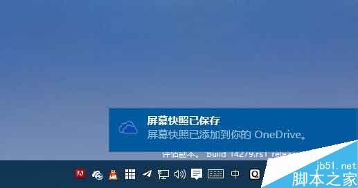 当你点击“保存到OneDrive”按钮后,每次当你按下PrtScn按键时OneDrive都会自动将你捕获到的截屏保存到OneDrive图片屏幕截图中,并出现下图所示的提示: