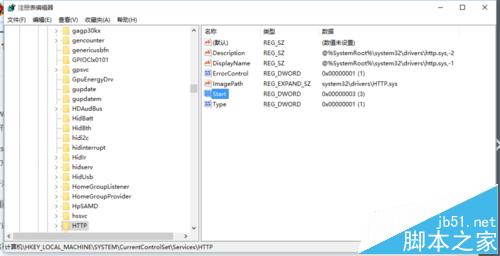 3、打开注册表:regedit。找到:HKEY_LOCAL_MACHINESYSTEMCurrentControlSetservicesHTTP