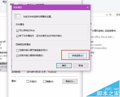 6、也许有很多小伙伴们会问,为什么此处的加密文件不需要输入密码呢?其实是这样的,此处的文件加密意味着该文件只能在本电脑中本账户打开,如果将文件拷贝到其他电脑或者本电脑的其他账户中,是不可以打开的。我们点击文件加密页面中的“详细信息”按钮。