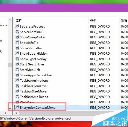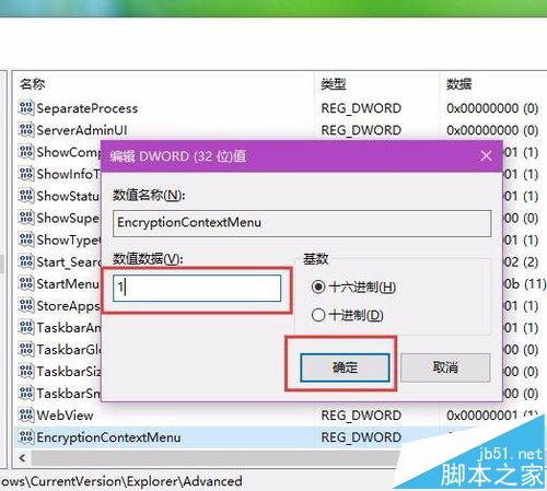 4、接下来,我们双击已经创建完成的EncryptionContextMenu子项,然后将该键值改为1,同时保存对注册表的更改。