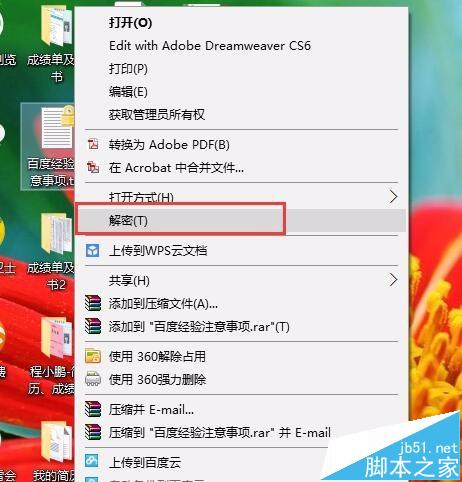 6、如果是对于一个已经加密的文件或者文件夹,在弹出的右键菜单就是“解密”按钮啦,点击即可快速解密或者加密,小伙伴们赶快试试吧。