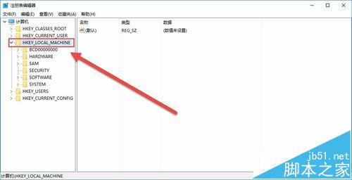 2、注册表编辑器里选择 HKEY_LOCAL_MACHINE 。