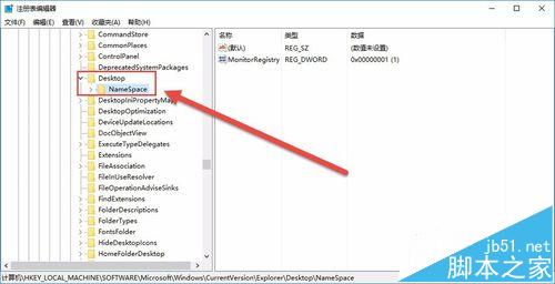 6、Explorer列表依次找到——Desktop——NameSpace