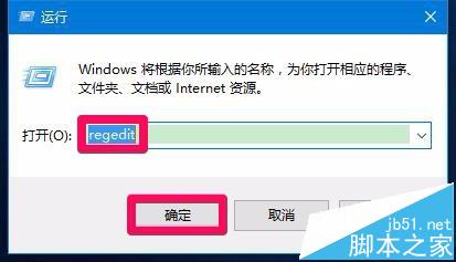 2、在运行对话框中输入:regedit命令,点击确定或者回车,打开注册表编辑器;