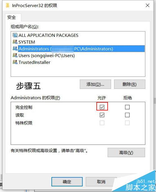 2、找到 HKEY_CLASSES_ROOTWow6432NodeCLSID{42aedc87-2188-41fd-b9a3-0c966feabec1}InProcServer32,在InProcServer32处点击右键-权限-高级-更改-填写administrators。如图所示最后点击确定,回到步骤2图片位置页面将“完全控制”点√