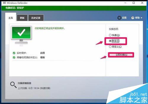 1、使用Windows Defender对系统进行完全扫描处理(略)。