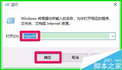 2、在打开的运行对话框中输入:regedit,点击确定或按下键盘上的回车(Enter)键,打开注册表编辑器;