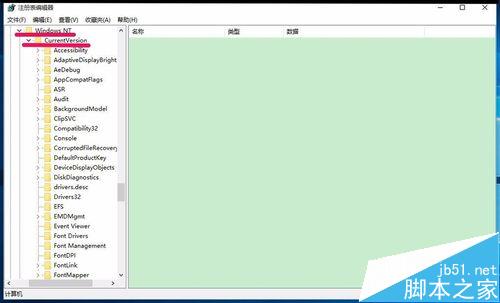 5、在Microsoft的展开项中再展开Windows NTCurrentVersion;