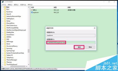 5、点击确定以后,可见:explorer REG_SZ C:WINDOWSexplorer.exe,退出注册表编辑器。