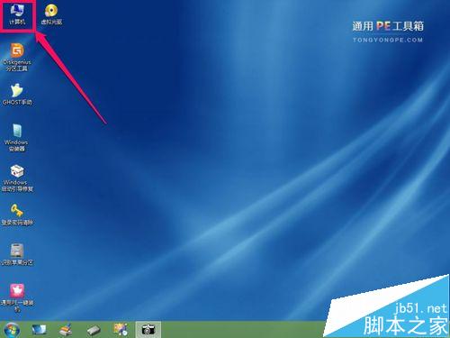 1、进入PE系统桌面后,先选择“计算机”快捷图标,打开它,进入磁盘分区。